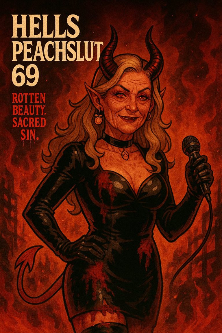 Hells Peachslut 69 is the sacrilegious siren of Hellbound Records — part seductress, part banshee, always dripping with venom and velvet. Her sound is a blend of industrial trap, sexcore metal, and hellish darkwave. She moans, screams, and sings about lust, death, rot, and rebellion — because heaven never let her in.